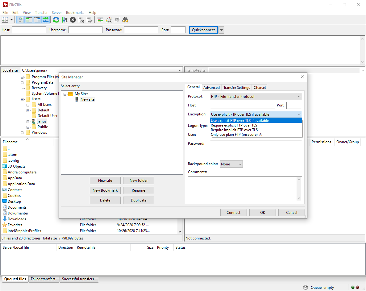 To encrypt your FTP connection, follow this guide and — if your FTP client has an option — enable “eplicit FTPS.” Most updated clients default to explicit, but it's good to check.