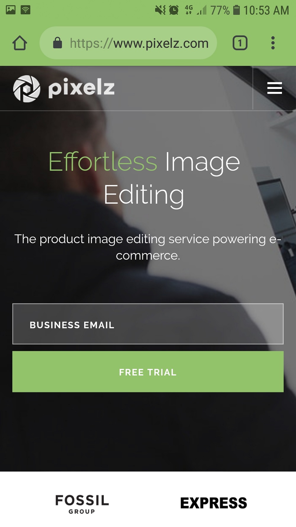 Pixelz Website on a Mobile Device