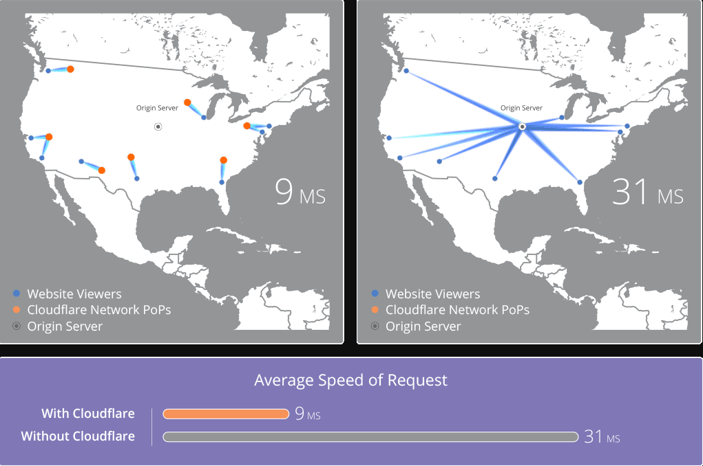 Even though the servers where your content is hosted can only be in one place, a (CDN) like Cloudflare has a network of servers located across the globe where your content can be cached and quickly accessed by users no matter where they are accessing the content from, giving all users quick loading times and a seamless user experience.