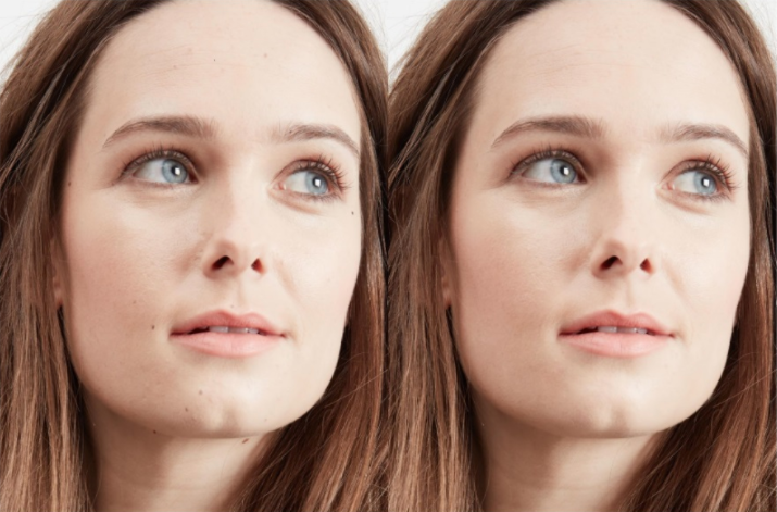 Before and after of AI mole removal.