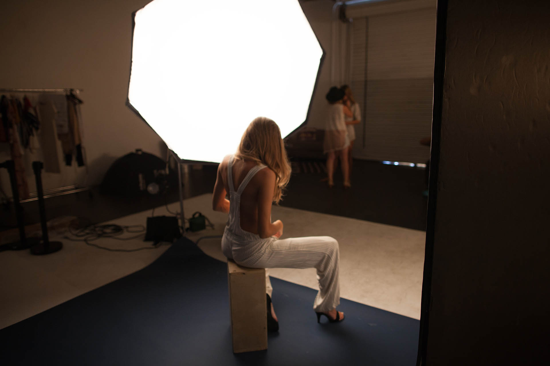 As far as the backdrop, we had the cove, but you can shoot it white. You can shoot it grey. You can shoot it in all sorts of different colors by how you light it. We do that quite a bit, and we have a number of scenes with it, but I think navy blue is a real clean, moody look. I actually ran to a camera store and got that five minutes before we shot. We were just like, “Shoot it!” And it came out great.