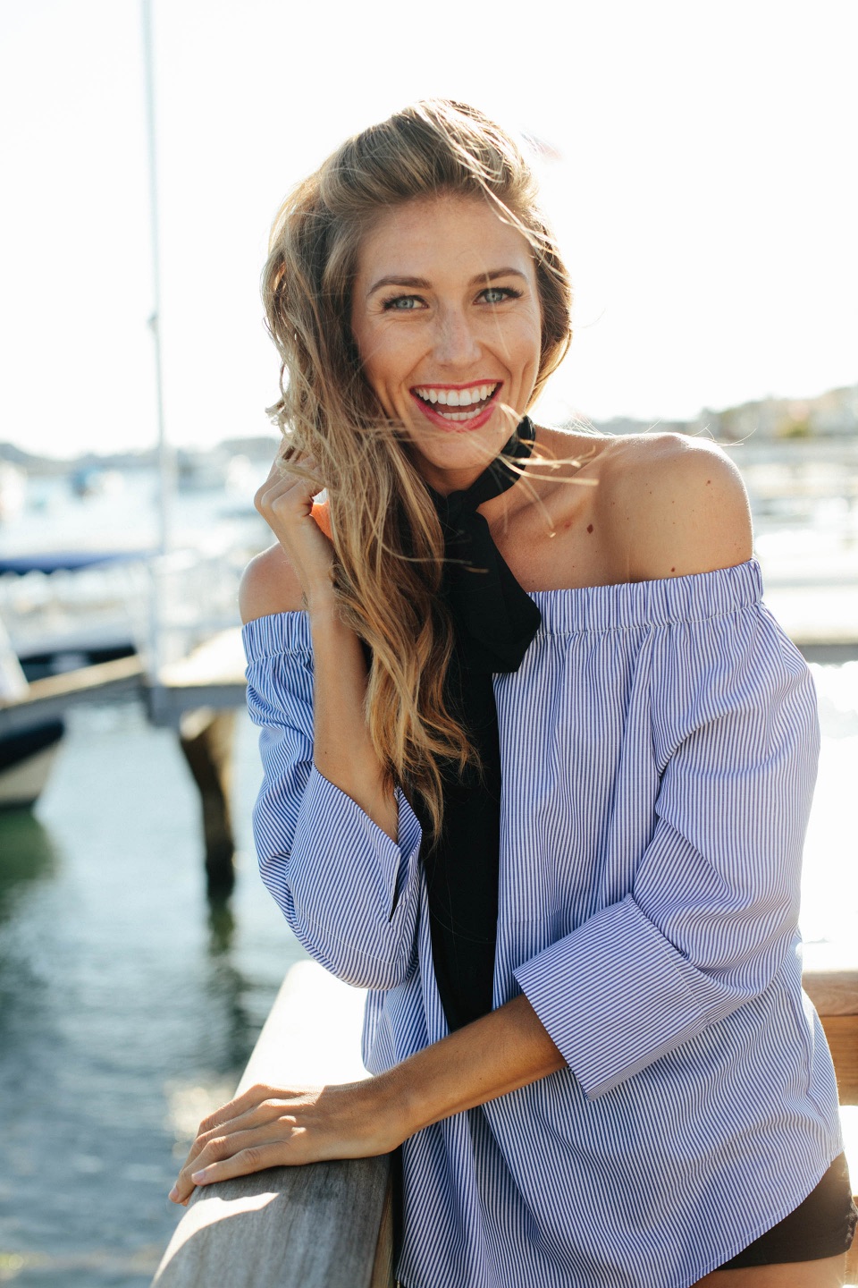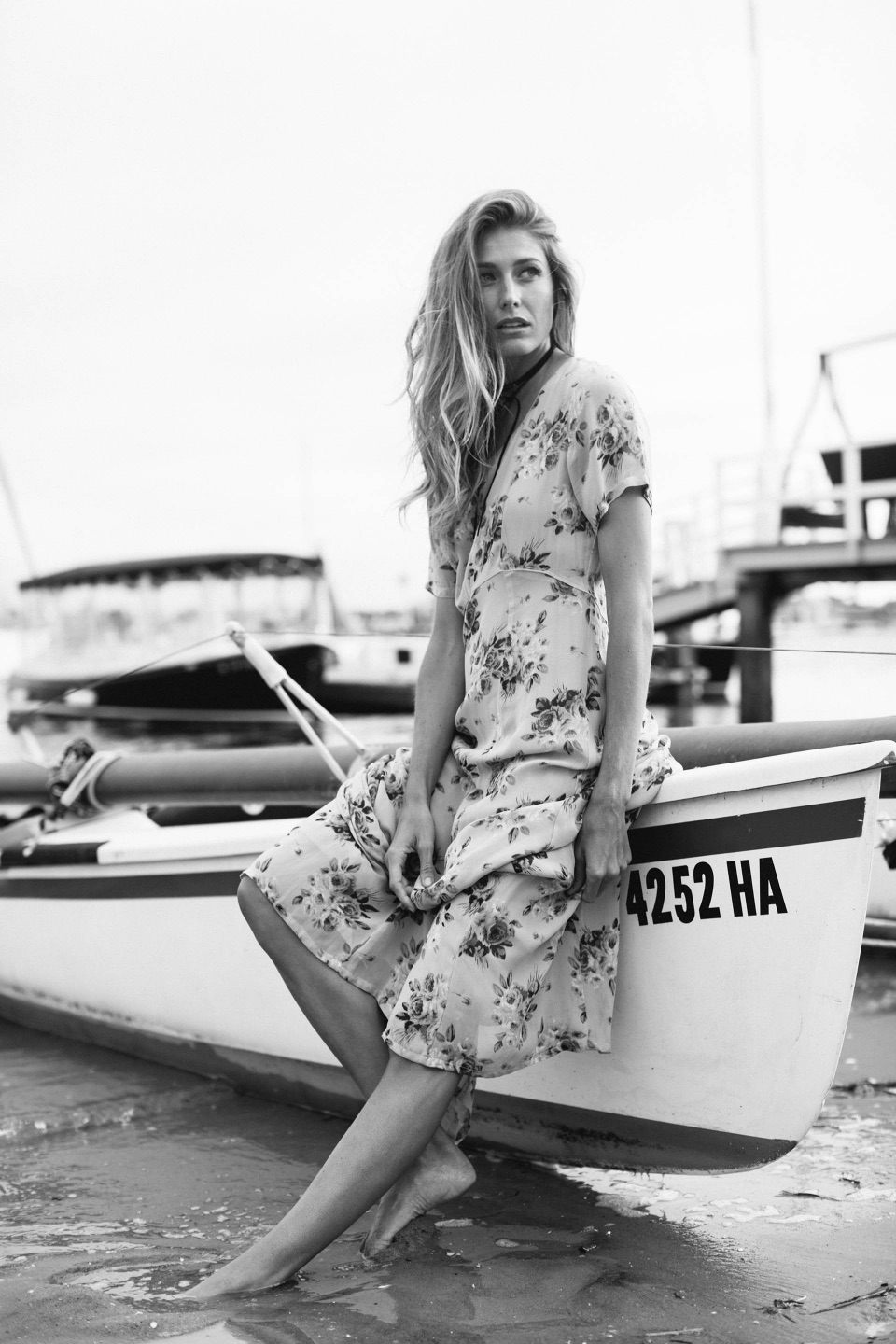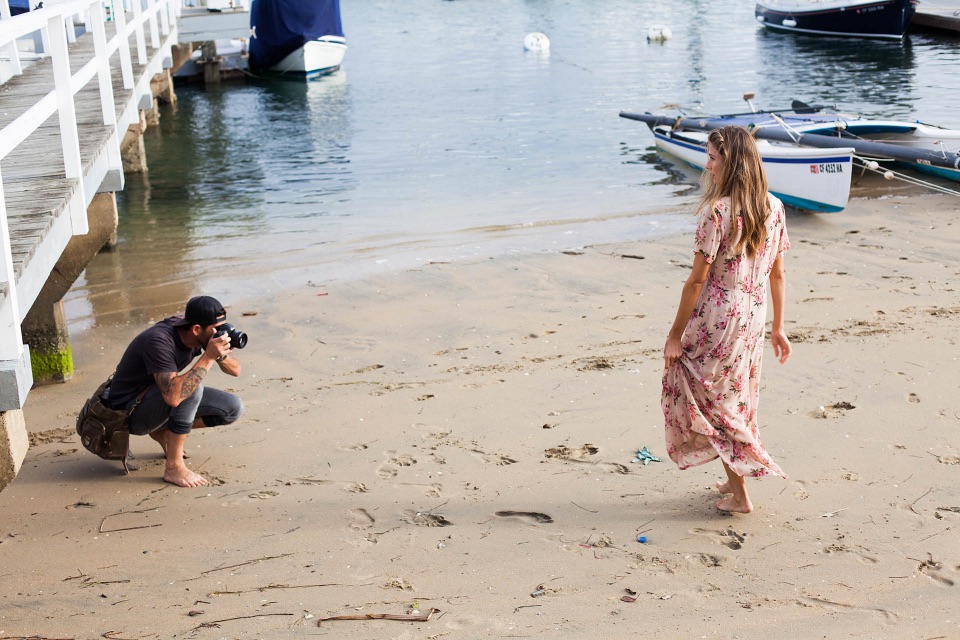 We thought of Balboa Island here by Newport. It's got a unique look with boats and the harbor, and there's a little boardwalk and a dock you can walk on. Depending on how you shoot it, it can look more timeless than shooting at a normal beach or a normal harbor. Then we walked around the neighborhood and the beaches finding unique spots with good light.