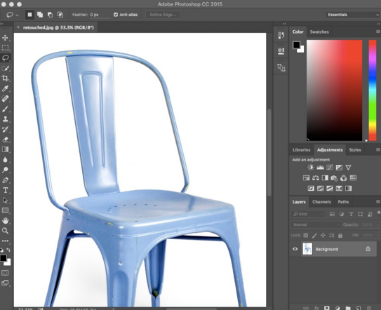 After photographing your furniture, it’s time for post-production. A little polish in a program like Photoshop will go a long way to increasing your image quality and optimally presenting your product.