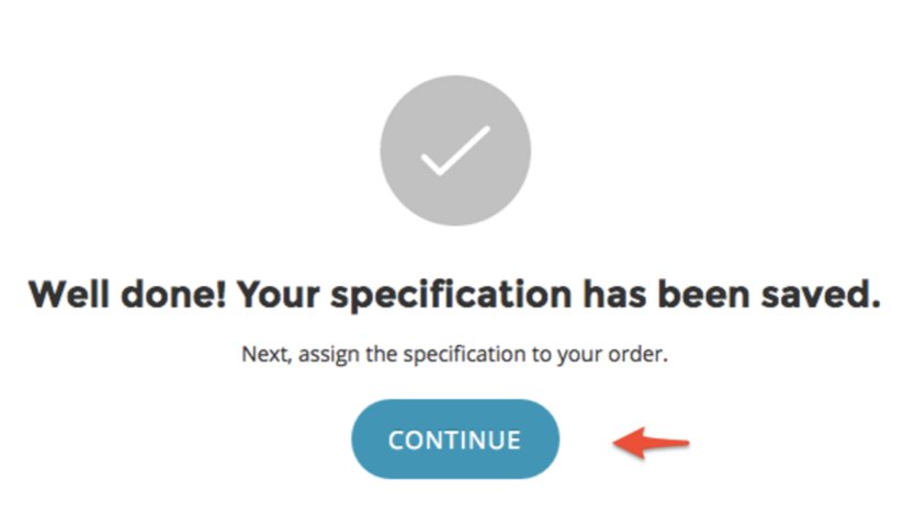 Name your specification so that you can easily identify it later. It, and any other specs you’ve created, will be available when placing future orders.