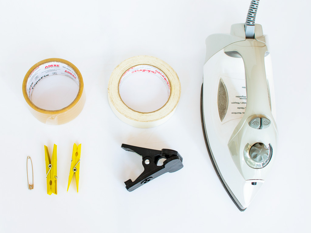 It is a good idea to keep clothespins, safety pins, adhesive tape, and scissors on hand so that you can repair or position neckties accordingly. These tools can even help you to create compositions that defy the laws of gravity!