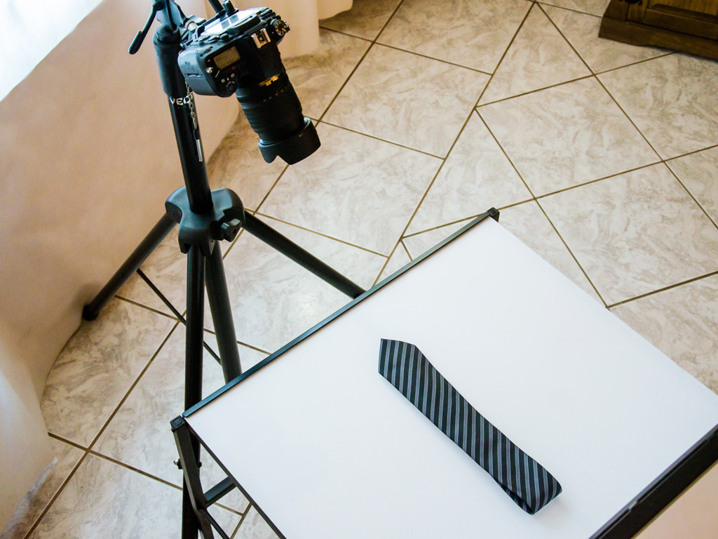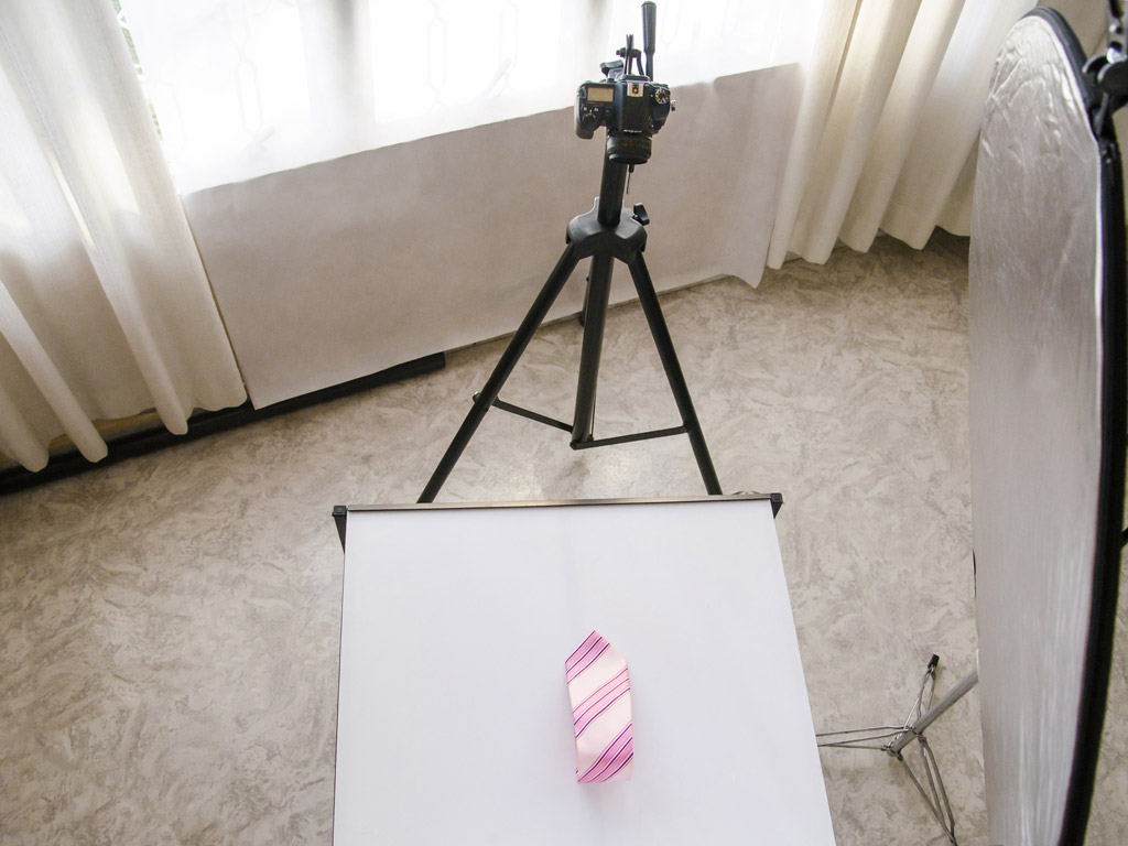 If you are selling the exact same tie with many different color variations, you can also photograph several or all of the differently-patterned ties together. This can be a very effective technique if you make sure to arrange the ties symmetrically!