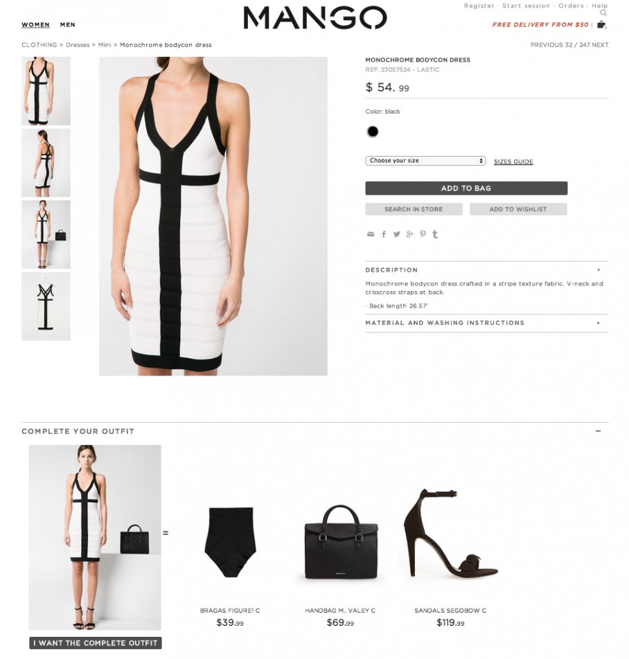 You can also add another extra boost to your site by showing your customer how to complete their full look. Companies like Mango have added an additional feature to their website that allows customers to pair other merchandise from their site together to create the ultimate look.