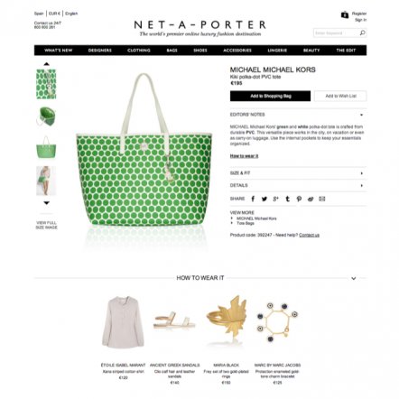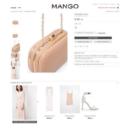 You can also add another extra boost to your site by showing your customer how to complete the ‘look’ of a particular product. Companies like Net-A-Porter and Mango have added an additional feature to their website that allows customers to pair other merchandise from their site together to create the ultimate look.