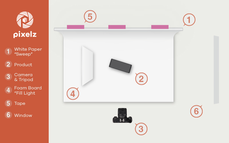Measure and mark the distance from the floor to the top of the shooting surface, the distance from your tripod and camera to the product, and even the distance between the lowest part of your camera lens and the floor. This may seem like a waste of time, but it is absolutely necessary if you want to create consistent images for your website. Even if you leave your studio set up indefinitely, accidents happen, and if you don’t have exact measurements, you may be forced to reshoot if you can’t figure them out again!