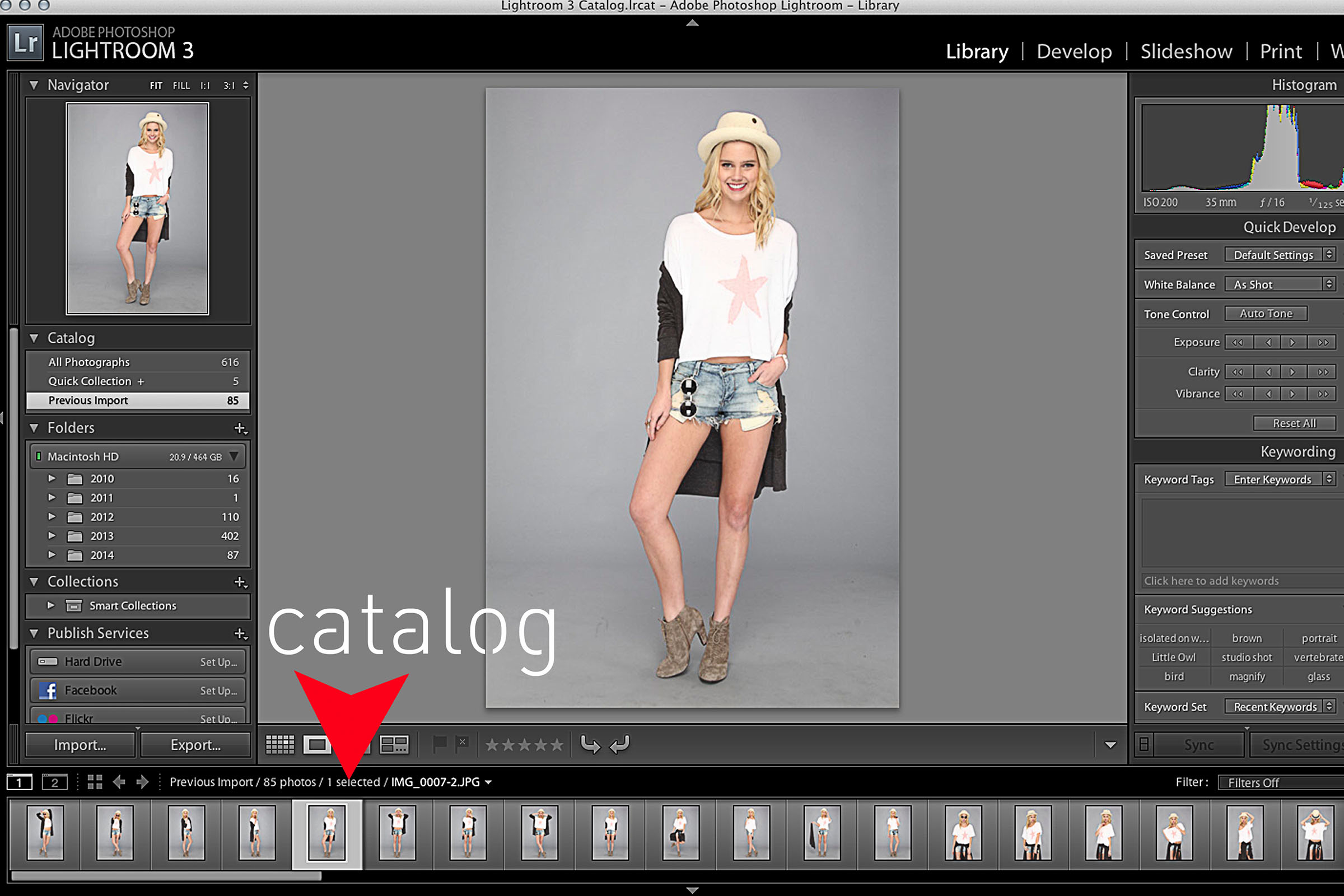 Cataloging software is useful because it allows you to see all the images that you have taken, filter through them by deleting or selecting images, rename files, and make “batch” edits to multiple images at one time. Some programs are better than others at cataloging imagery, but Adobe Lightroom is generally considered to be one of the best. With it, you’ll also be able to rename and locate files, as well as fully post-process, export, and archive your images.