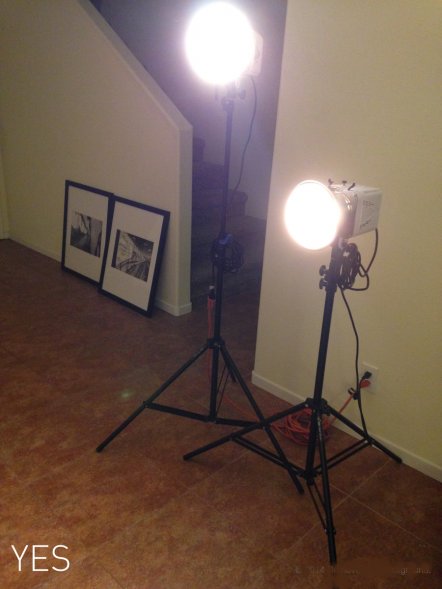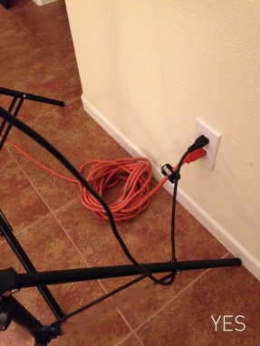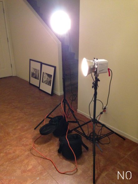 If you are working with artificial lights, remember that they use a decent amount of power and are expensive to replace. There is no need to give yourself the opportunity to trip over cords or knock things over and risk having to pay for it two-fold because you broke equipment and injured yourself. Gaffers tape, velcro, zip ties, sand bags, and clamps are affordable friends! Coil cords near light sources and tape them down to reduce the risk of tripping. Use a heavy duty multi-outlet and extension cords when you can.