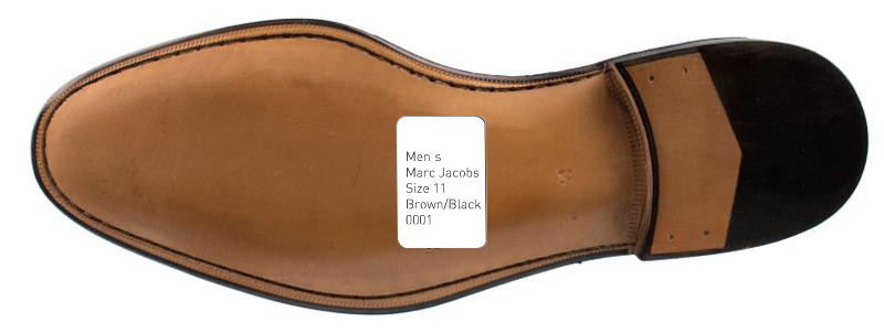 The tag included on this shoe provides clear, identifying information about the product.