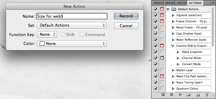 Utilizing the “Actions” feature not only drastically speeds up the editing process, but it also creates a standard for how to edit your images consistently, leaving little room for mistakes and inconsistencies. In addition to a basic edits Action, we also recommend creating one to optimize images for the web quickly.