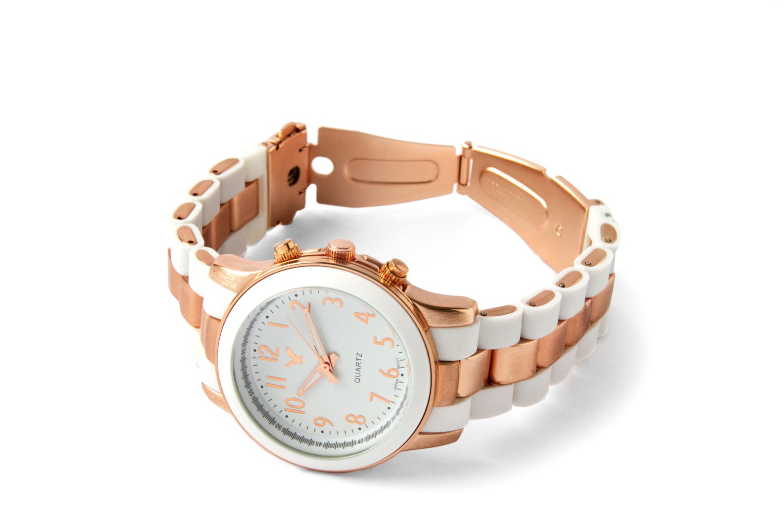 To achieve the effective lighting in the watch photo on the right, we moved our light source from direct side lighting to 45-degree side lighting so that the watch’s face would become brighter without causing a spot glare on the face.