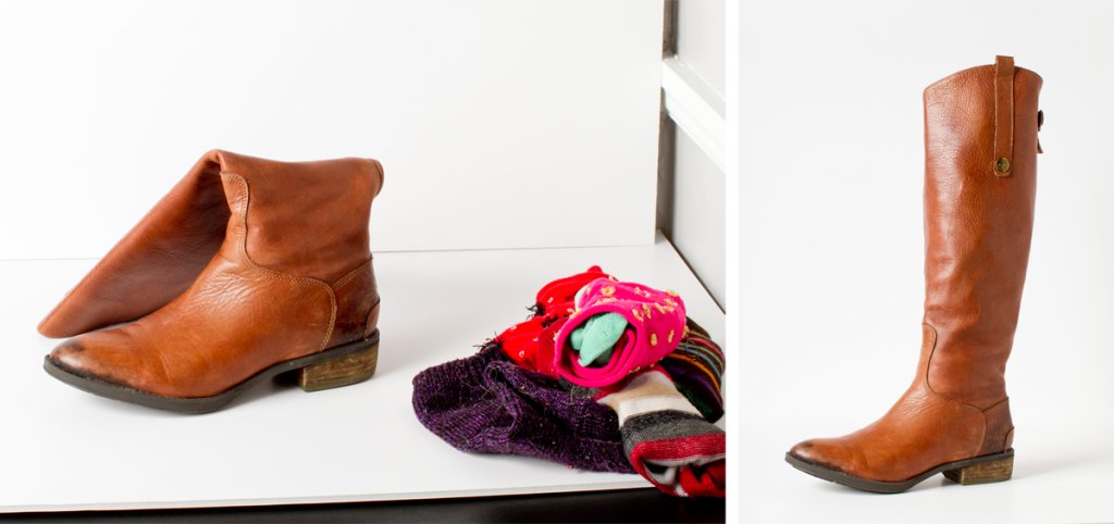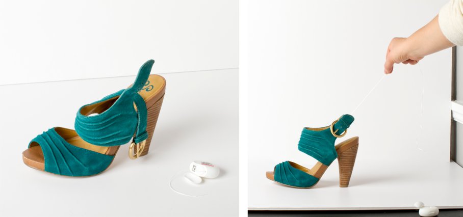 DO make sure that every piece of footwear looks its best by creating the illusion that the shoe is being worn by someone. Some good ways to communicate shape and help the shoe to stand alone are: stuffing the shoe with tissue paper or crumpled paper, or tying dental floss to the shoe’s straps to hold them up in the frame.