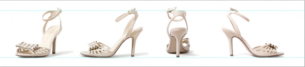 These images are sized well enough, but cropped inconsistently because the footbed and top strap of these shoes are not aligned in all four frames.