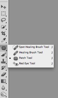 For easy small corrections, use the Patch tool. For challenging areas, use the Clone Stamp tool.