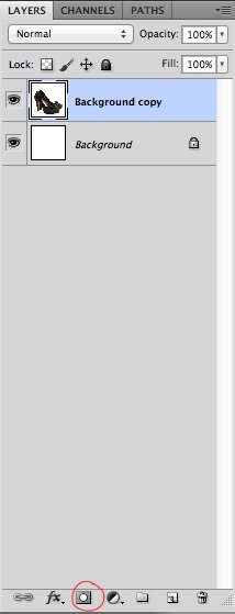 Then make a mask of this selection by clicking the button with a little square with a circle inside the middle. It will automatically attach a mask onto your retouched layer. If you enter into your mask by clicking “\”, you can check your mask to make sure everything is masked like you want. In my case, I had a little bit of the shadow in the image that I wanted to take out as well. You can use your brush tool to simply brush out those parts unwanted. Click “\” again to exit your mask mode. And now your product is sitting on your white background!