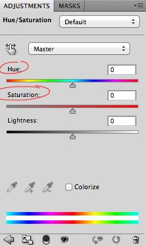 Photographing certain colors can be tricky, so have your product on hand at the time you are retouching. This will help you change the colors if needed. Since I shot a black heel I need to neutralize the suede because sometimes the colors around the image show into the blacks instead. I have made a Hue/Saturation layer which can affect the colors (ex: from red to purple) and how vibrant they are (ex: from pale to neon)
