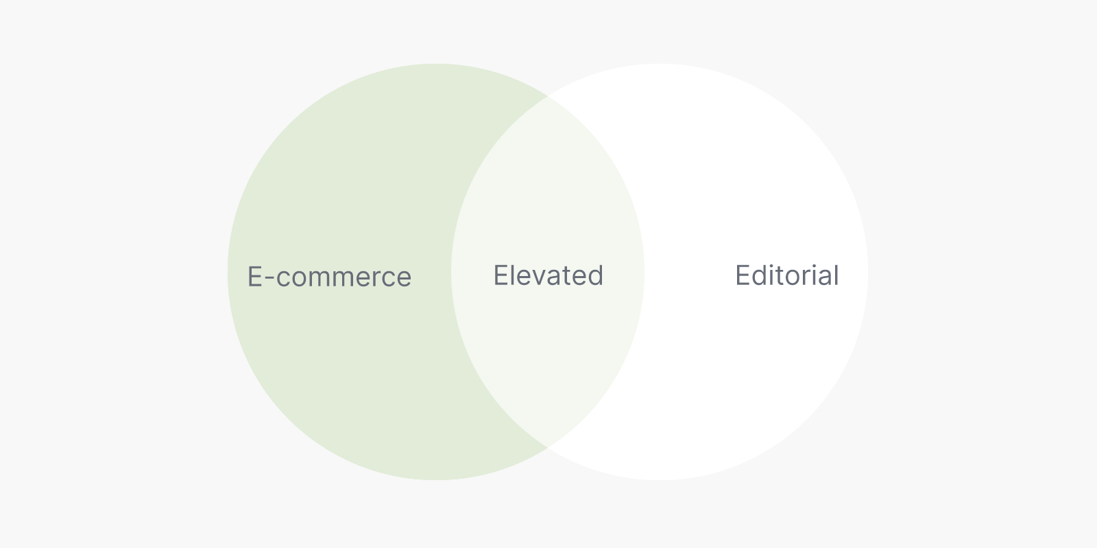 Somewhere between editorial and e-commerce product images is where Elevated Product Images live. It is the fine balance between allowing a brand’s personality to shine while maintaining an emphasis on the product. As with any new concept, it can be a bit difficult to explain, so maybe this Venn diagram can explain it for us: