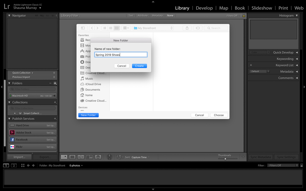 Once you're in the catalog you want to use, create a new parent folder for the images. You'll be able to create subfolders later for specific items, product lines, etc.