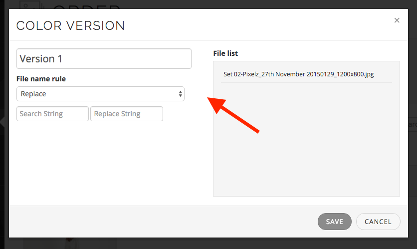 This is basically file handling; we haven’t got to the color changing yet. At this point I can choose a file naming scheme based on replacing, prepending, or appending a string.