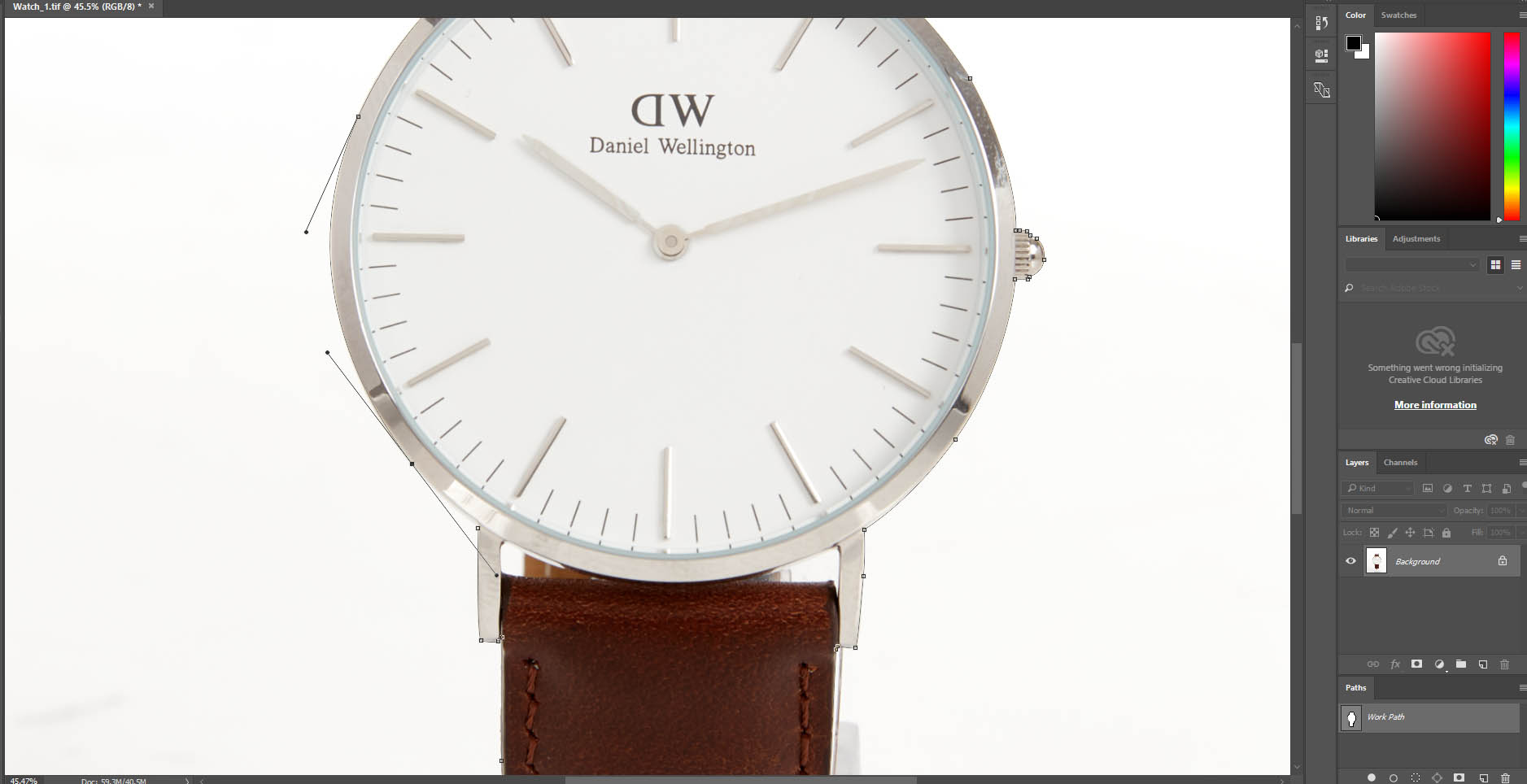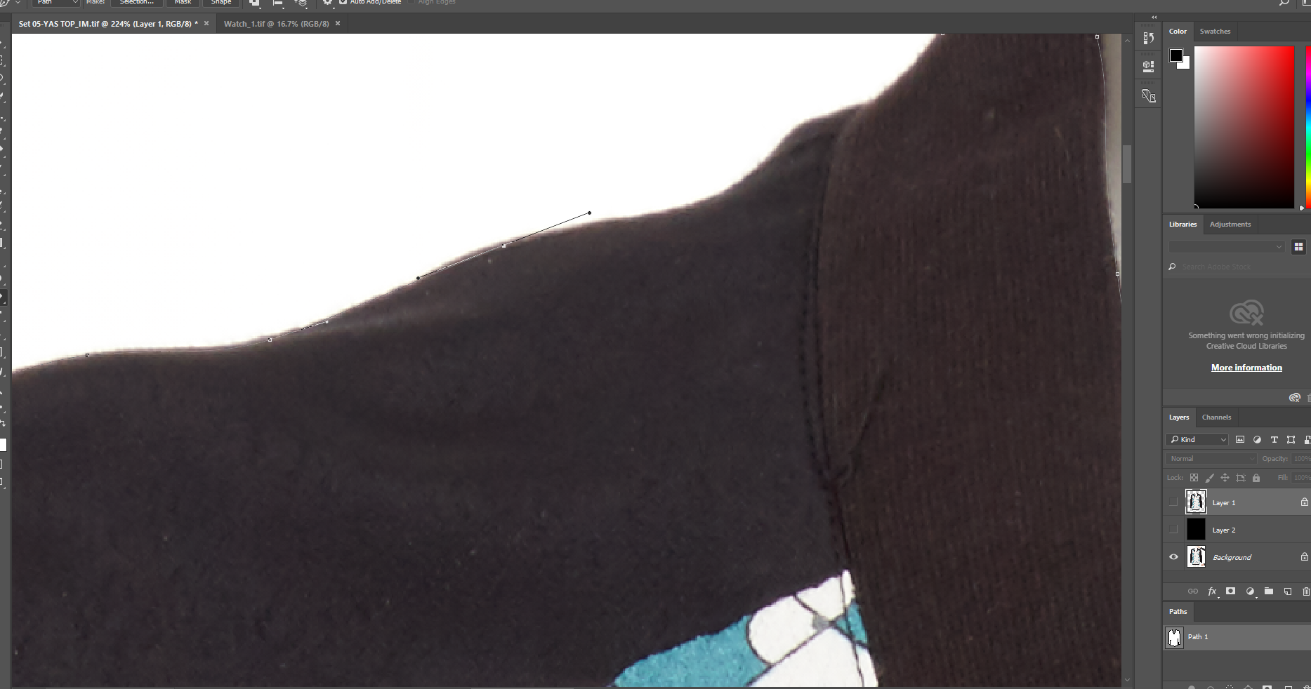 Clipping paths are drawn around the outer edges of a product in Photoshop.