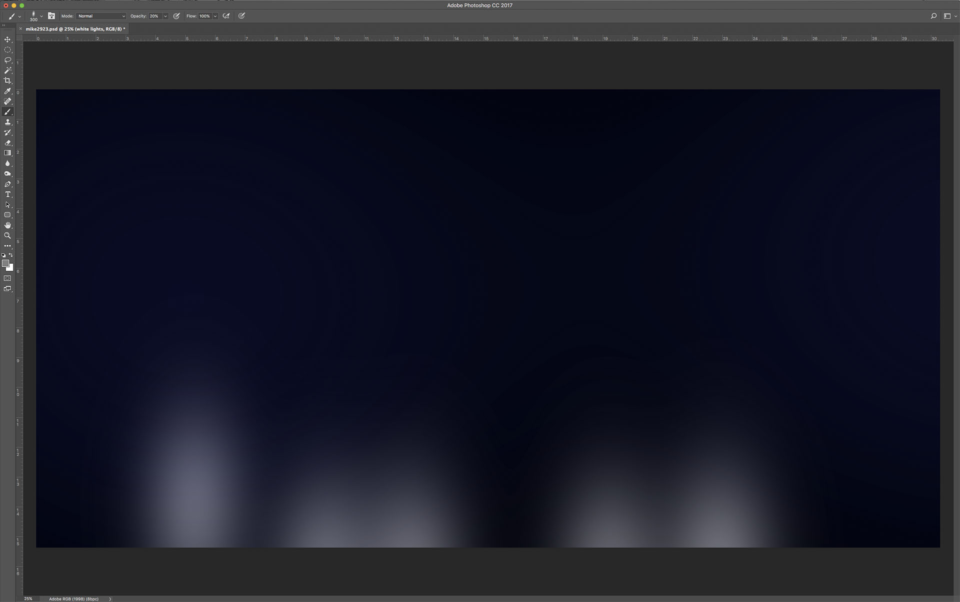 Next, I’m going to start on the background plate. I want to add some light to direct the eye to the outsole. I want something to resemble stadium lights, but I also want to make it look as if the lights are holding up the cleat (get as crazy as you like)!