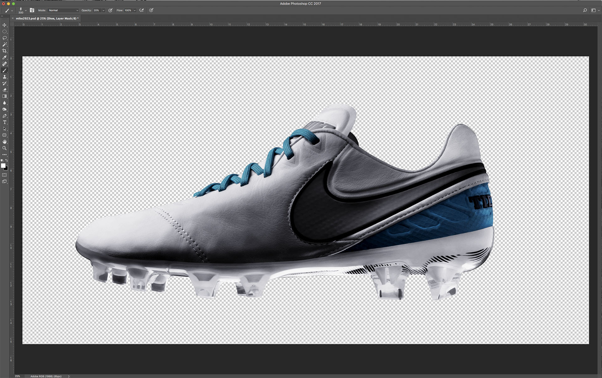 I masked out the outsole and used the curves adjustment to brighten up the light.